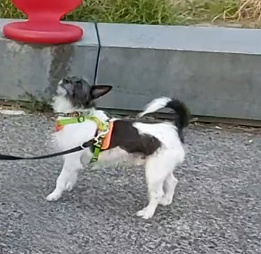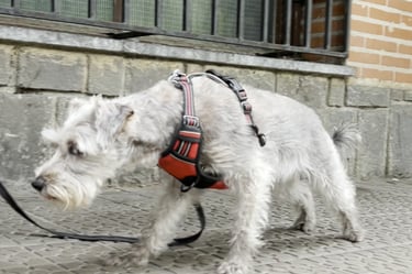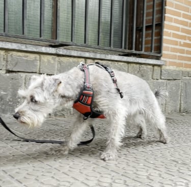 Caso de reactividad y miedos en entorno urbano. Mediante trabajo cognitivo-emocional y exposición controlada, Whisky pasó de reaccionar ante perros y estímulos en movimiento a realizar paseos estables y equilibrados.